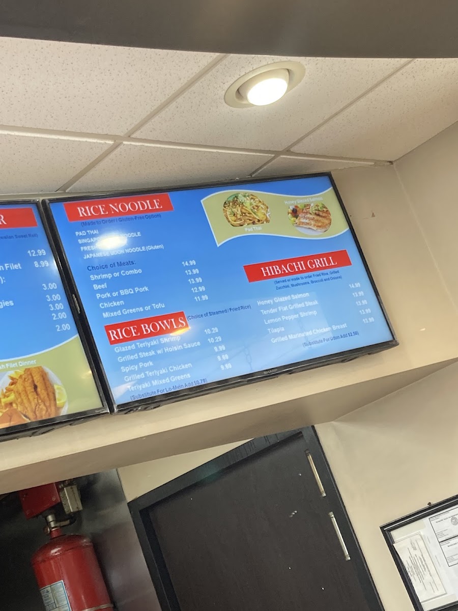 “ Location is kind of hidden in my opinion because of all the times I've drove by this area I've never seen it. I was going to another location for lunch when I was forced to make a u turn into a parking lot due to traffic. I looked up and saw the sign and decided to drop in. The food was excellent in my opinion and the establishment very clean and orderly. The prices we very competitive to others of this type of fast food cuisine. Employees were very polite and curiosity. And speed of the service was very prompt. I received my order right after payment was made and was out the door. Food was hot and very delicious in my opinion. I will return to this location for my future lunch endeavors. If you like Asian cuisine I would recommend this establishment. ”